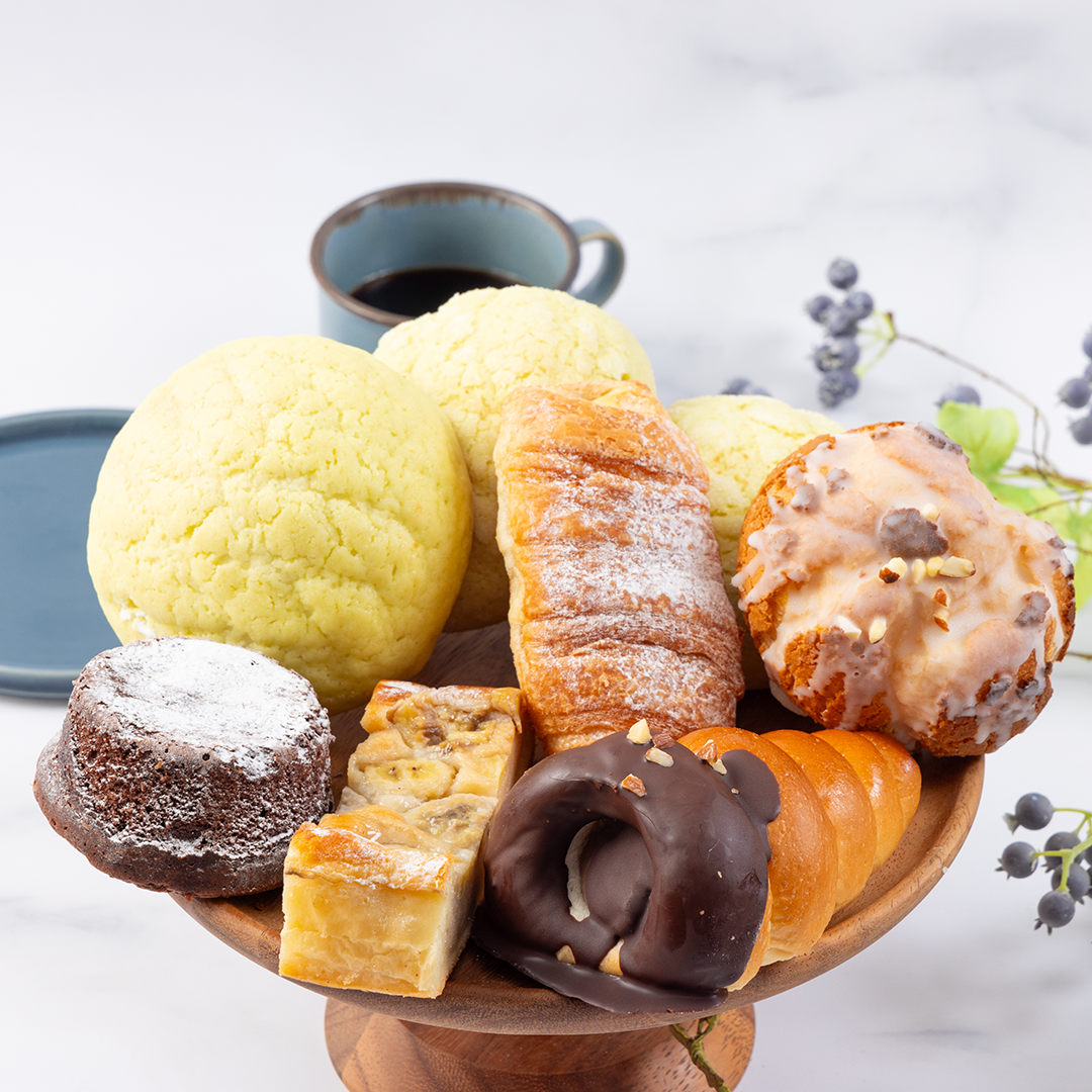 蒜山ジャージーカスタード×1個、チョコカスタードコロネ×1個、スペシャルメロンホイップ×2個、ホイップメロン×1個、フォンダンショコラ×1個、アイスクッキーシュー(カスタード)×1個、バナナクーヘン×1個が入っているお得なセットです。
