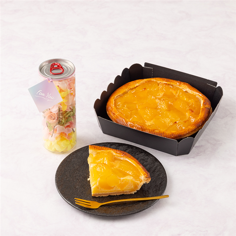 パイの器に国産りんごのプレザーブをたっぷり使用した贅沢なアップルパイです。カスタードとアーモンドクリームを合わせ、りんごをたっぷり乗せ焼き上げています。