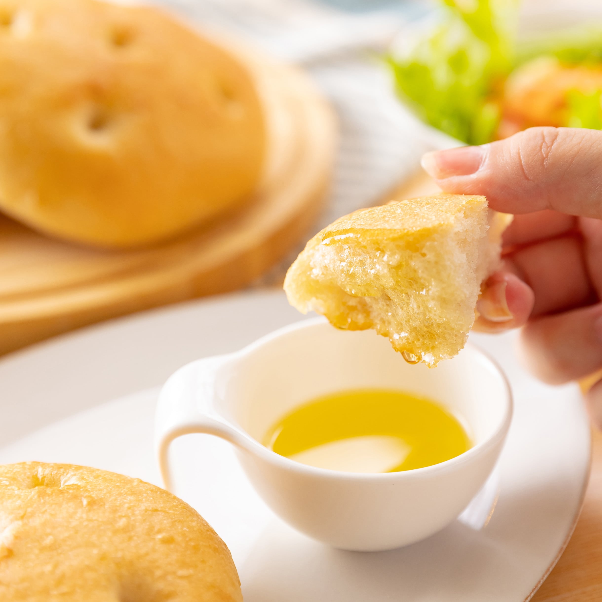 もっちり!しっとり!塩こうじ湯種で仕込んだ、シンプルなフォカッチャ。小麦本来の美味しさをお楽しみください。