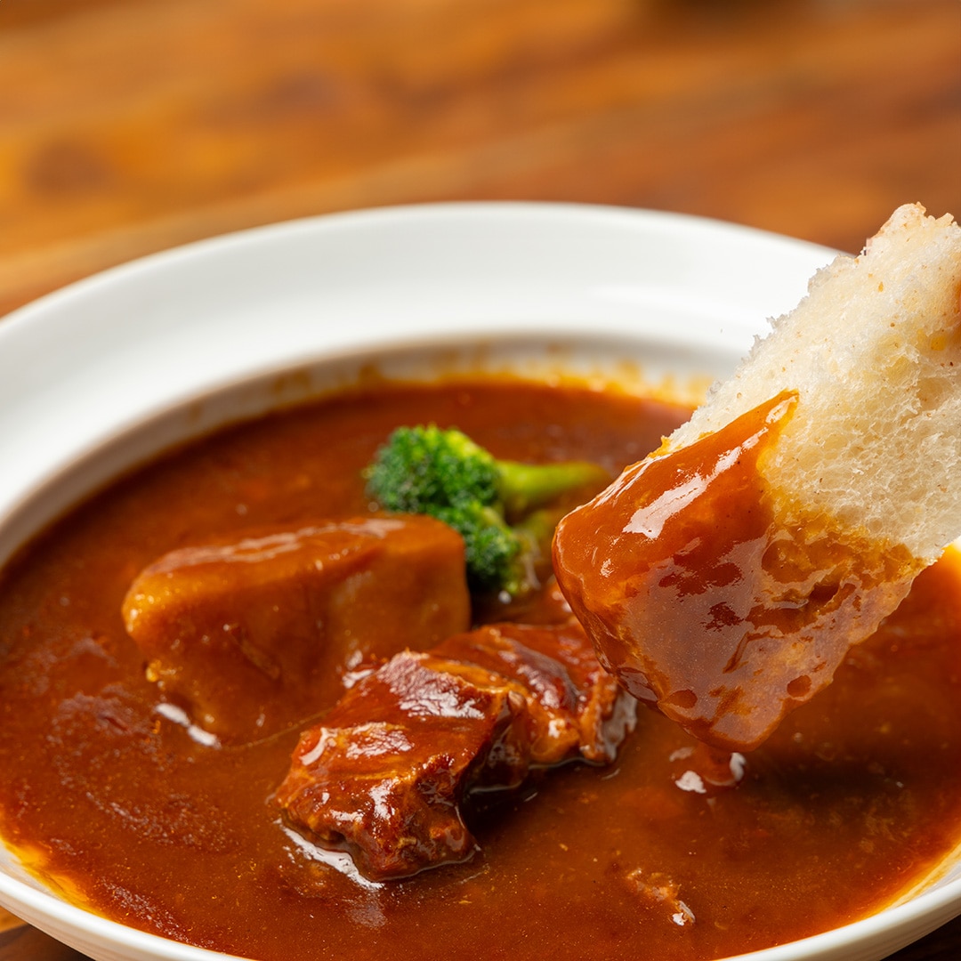 デミグラスベースの赤ワイン本格仕込みの特製ビーフシチューです。