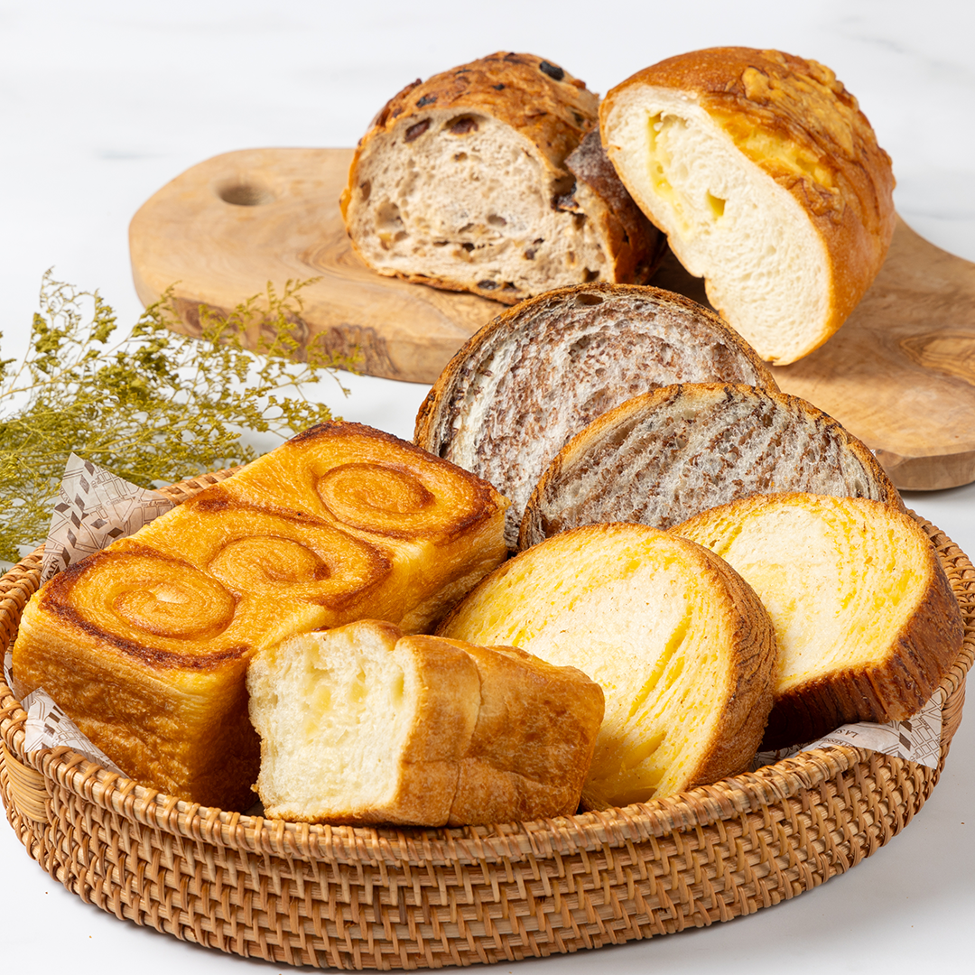 時間のない朝食にも、ちょっとこだわりたい夕食にも楽しめる6種類のパン(チーズフランス×1個、くるみとレーズン×1個、全粒粉入りブレッド×1個、神戸屋新(あらた)2枚入×1個、神戸屋豊新(ゆたか)2枚入×1個、クロワッサンプリュス×1個)のセットです。