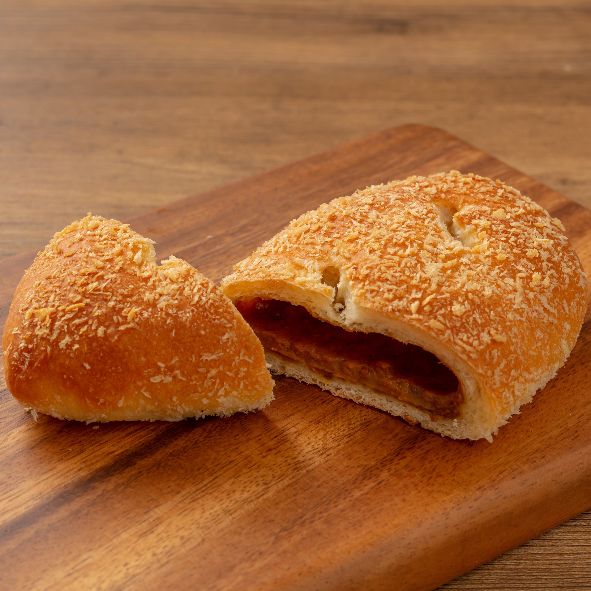 ピリッとした辛さと旨みがあるビーフカレーパンです。