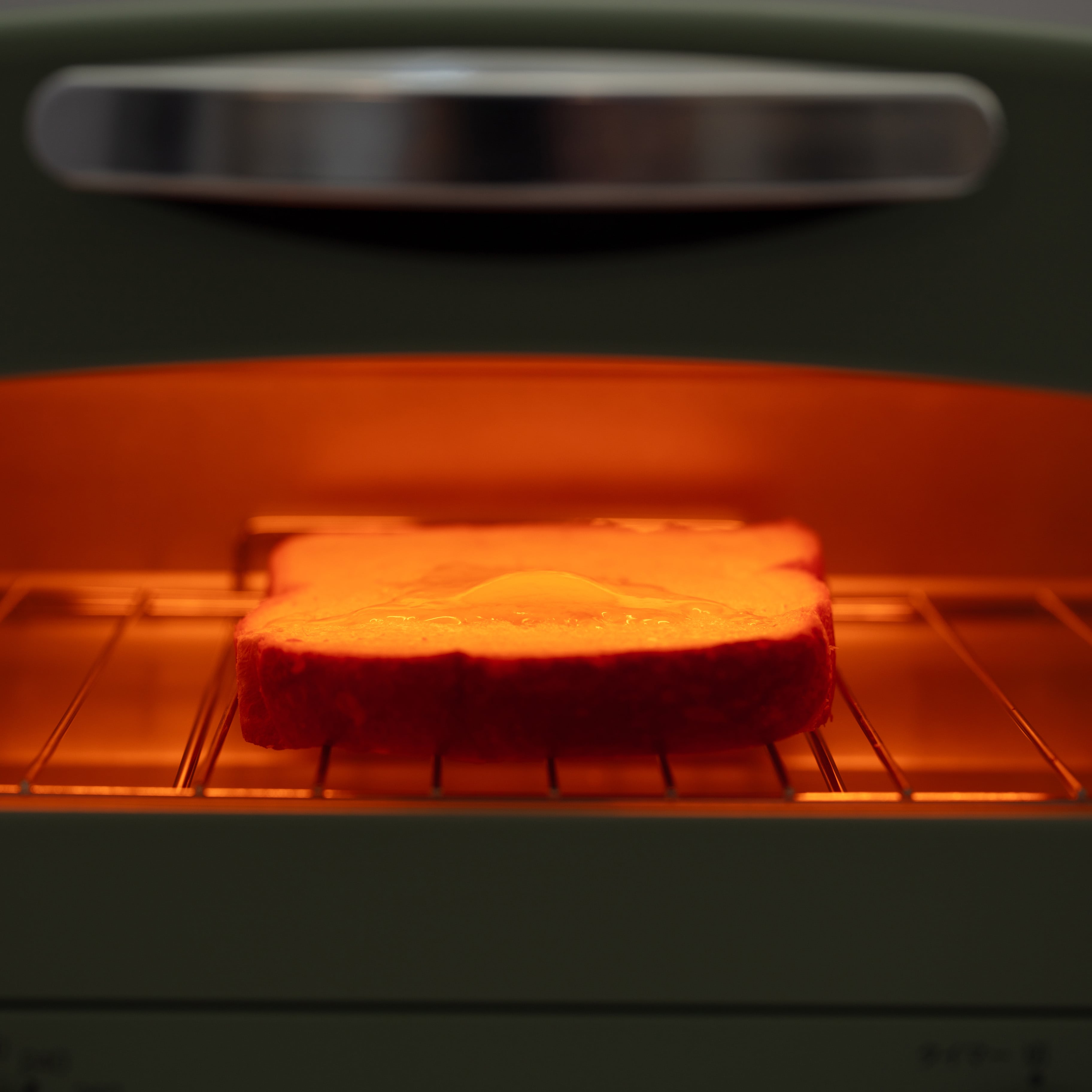 ②凍ったままの食パンをトースターに入れ、200℃で4分~4分30秒焼いてください。