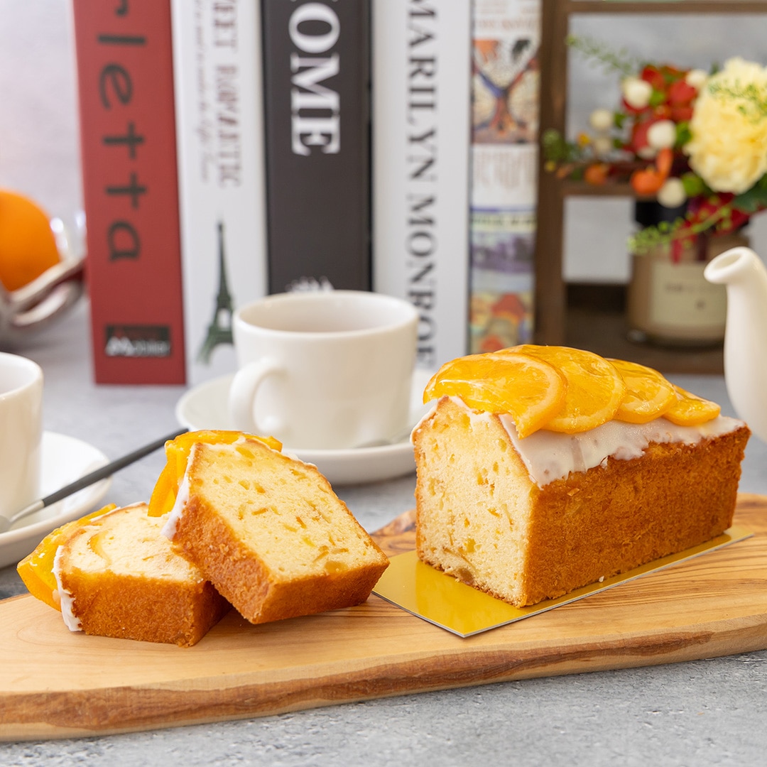 オレンジピール入りの生地をしっとりと焼き上げ、