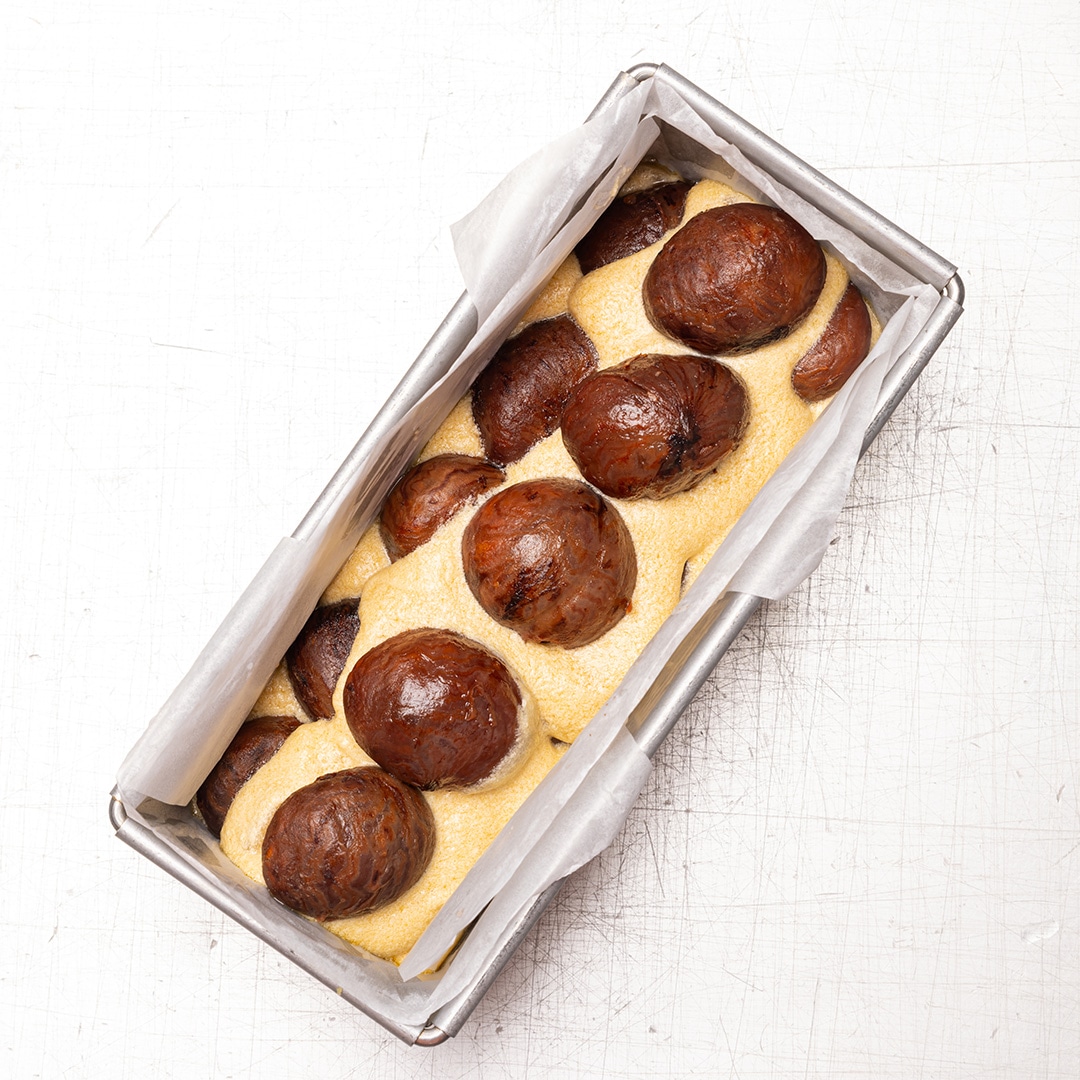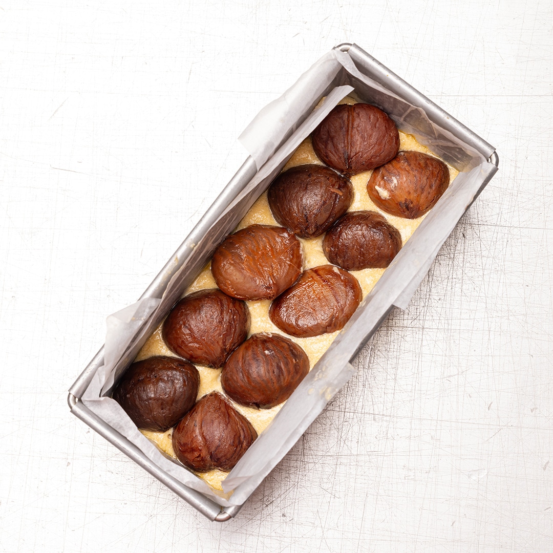 渋皮を残した栗の甘露煮を15粒、隙間なく贅沢に敷き詰めました。