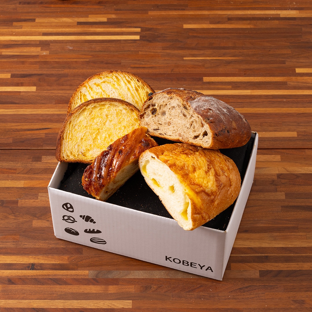 毎日の食卓を彩る4種類のパン(チーズフランス×1個、くるみとレーズン×1個、アーモンドペストリー×1個、神戸屋 豊新(ゆたか)×1個)のセットです。