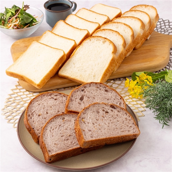 もっちりふんわり穀物を味わう「やわらか15穀」、トーストするとサクッと香ばしい「イギリス」、熟成した味わいとほど良い食感の「パン・ド・ミ」、その日の気分に合わせて、至福の朝食タイムが楽しめる食パン3種×2個ずつのセットです。