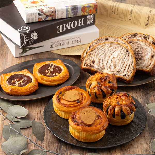 ショコラチーズケーキデニッシュ、濃厚チョコデニッシュ、大人のコーヒー&チョコレートロール、神戸屋 あらた、4種類各2個ずつの特別セットです。