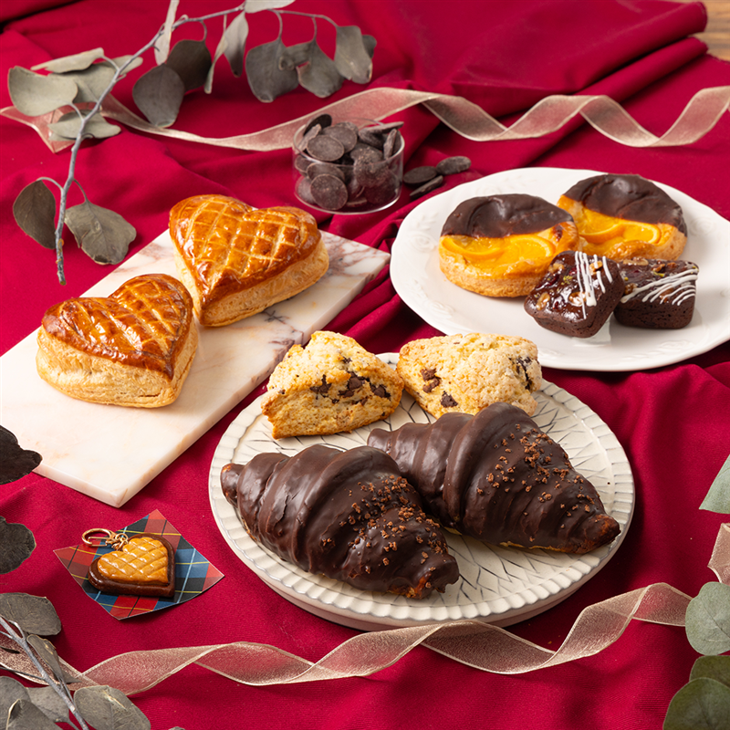 「飾りパンキーホルダー」+オレンジのガレットショコラ、チョコレートパイ、ダブルチョコスコーン、Crossiantショコラ、チョコレートブラウニー、5種類各2個ずつの特別セットです。