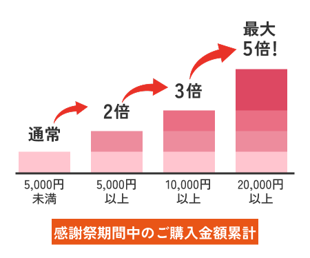 4周年感謝祭期間中に累計30,000円以上お買い上げのお客様が、応募対象となります。
