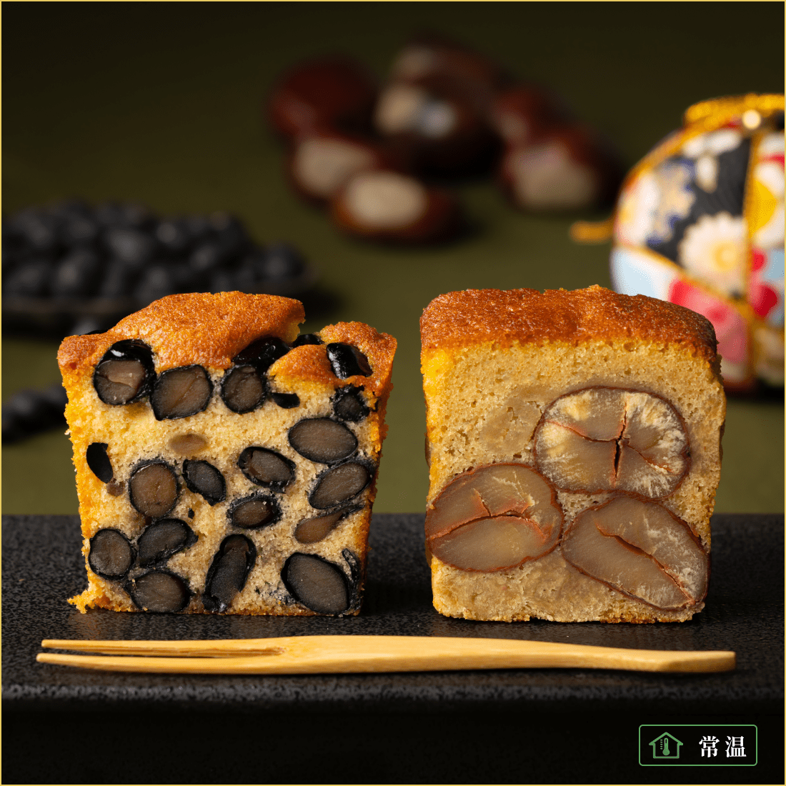 たっぷりの大粒丹波黒豆、北海道産バターを使用、隠し味にふんわりと柚子を効かせた贅沢な味わいの「大粒丹波黒豆のパウンドケーキ」との食べ比べが楽しいセットです。